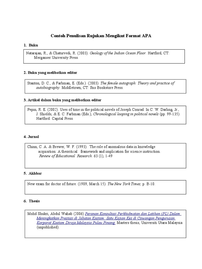 Contoh Penulisan Rujukan Mengikut Format Apa Pdf